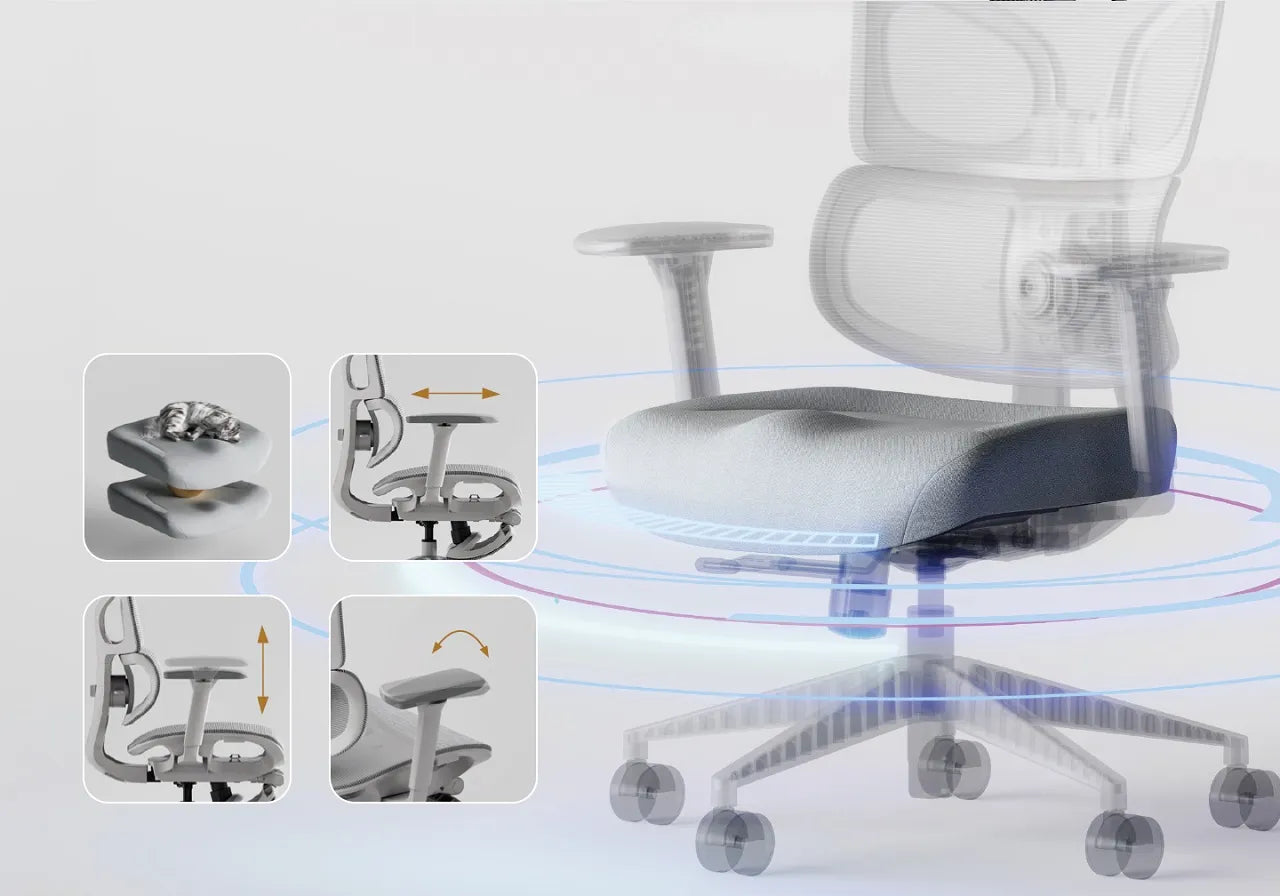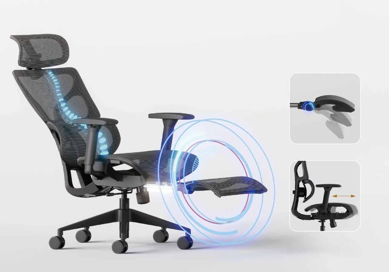 Designed for both focused work and relaxed sitting, the adaptive backrest supports natural posture changes, helping reduce fatigue and improve overall comfort.