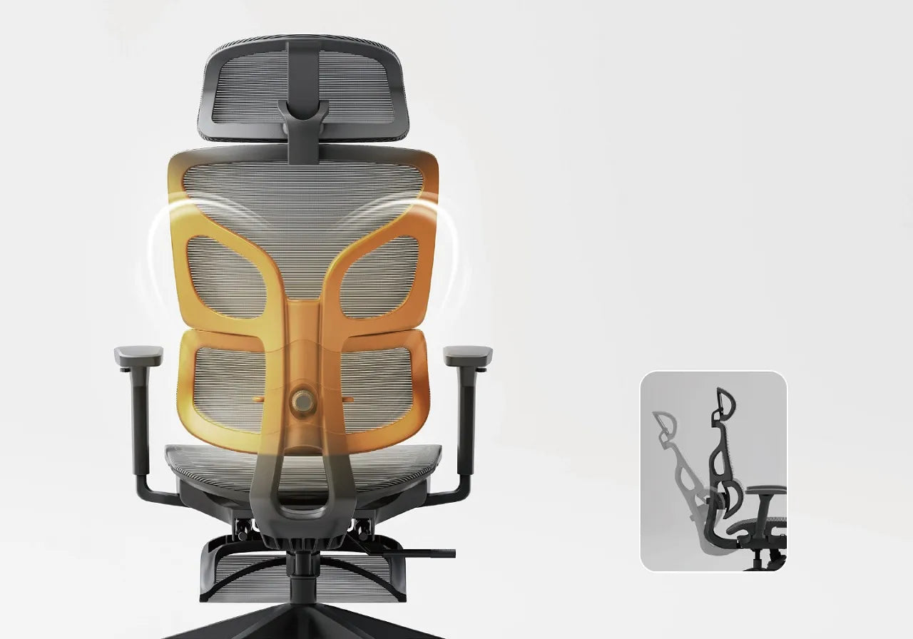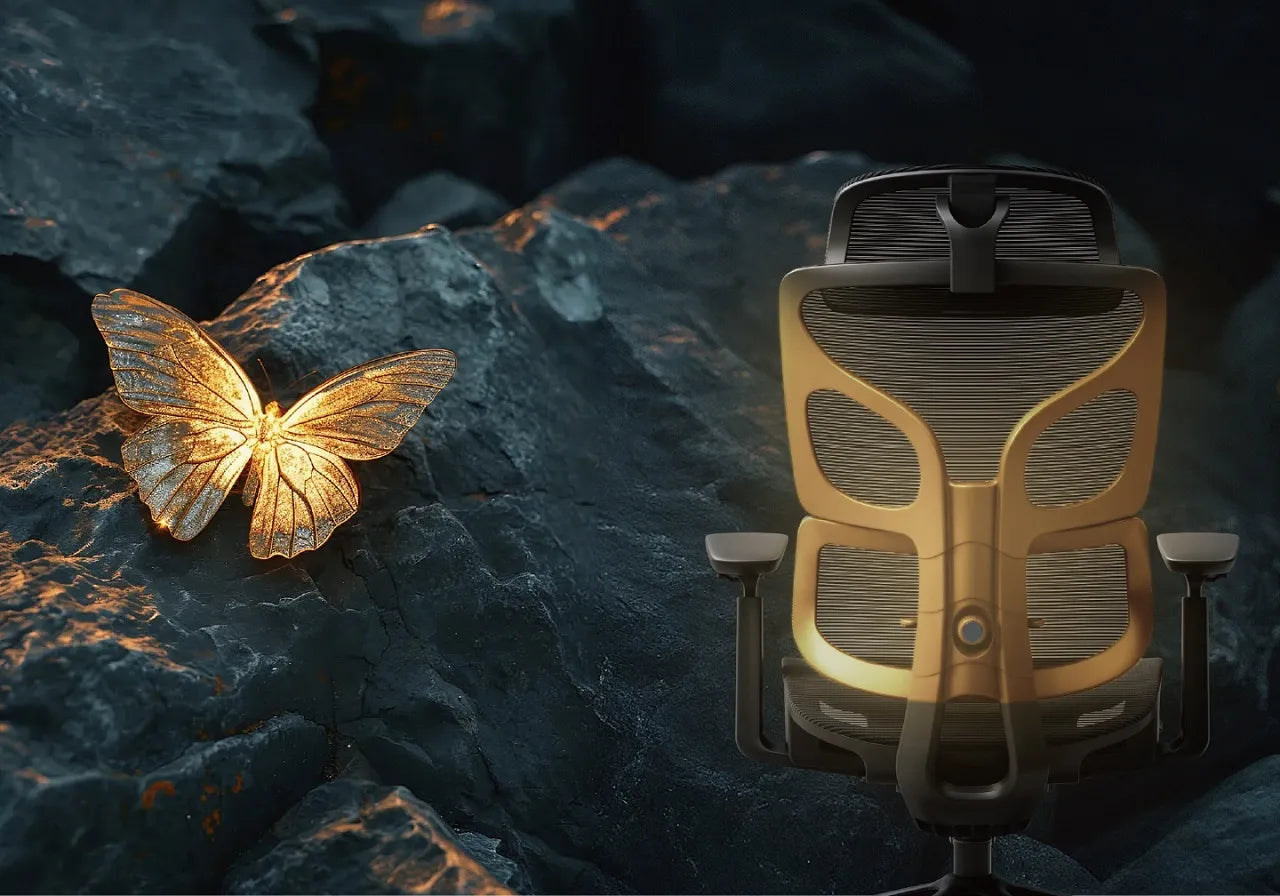 Inspired by butterfly wings, the bionic backrest moves naturally with the body, adapting to different sitting postures.