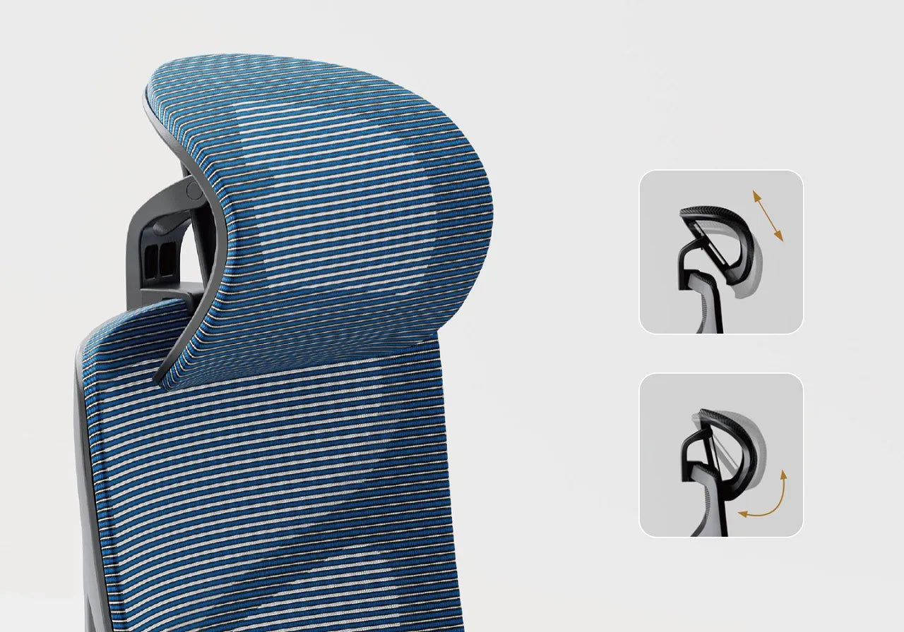 With 90 mm height adjustment and 54° rotation, it helps reduce neck pressure and fatigue, providing stable cervical support during long sitting.