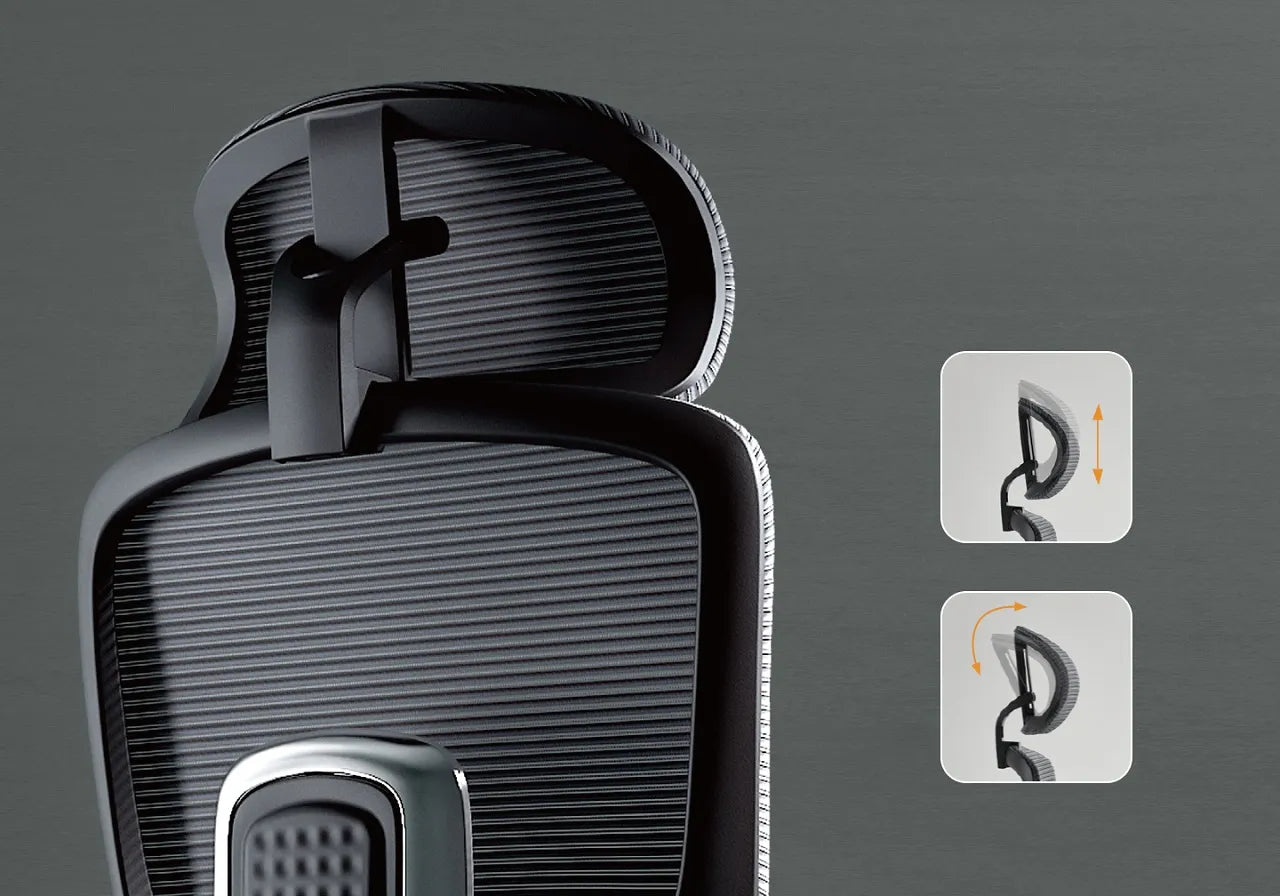 - Segmented adjustable lumbar support with 5 height levels (50 mm range) and elastic self-adaptive structure, designed to closely follow the natural curve of the spine and enhance sitting comfort during long hours.